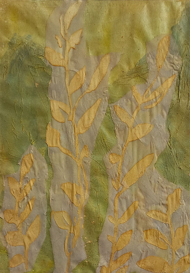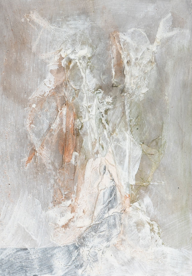Collagen auf Malkarton, Acryl, gewachst.